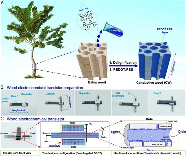 近期,瑞典皇家理工学院和林雪平大学的研究人员终于宣布,已成功研制出世界上第一个木制晶体管,并将相关研究成果发表在《美国国家科学院院刊》。