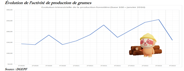 根据加蓬经财总司(DGEPF)公布的最新报告显示,2022年第四季度,其以指数衡量的原木产量与上一季度相比大幅下降了37%。