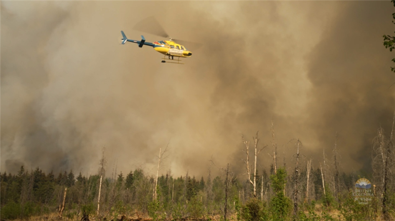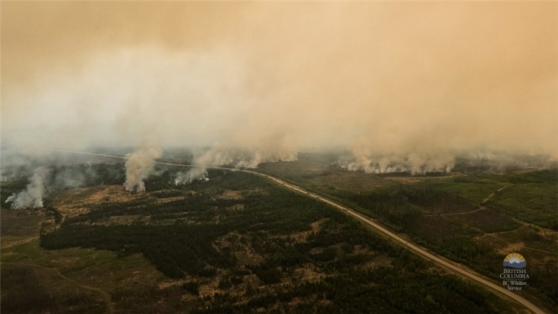 不列颠哥伦比亚省圣约翰堡以东的边界湖大火面积估计为5900公顷,目前已被列为“失控地区”。