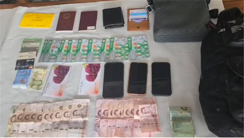 警方查获的作案凶器为一把短小折刀。此外,还查获了11本存折、5张储蓄卡、1张信用卡、1.17万泰铢现金、3部手机、2本护照和1个钱包。