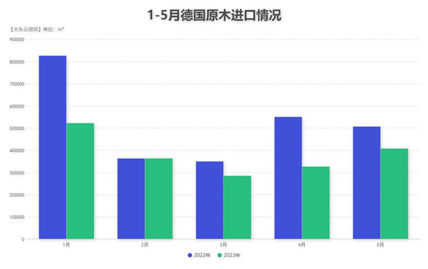 德国作为今年以来向中国出口原木最多的欧洲国家,1-5月的原木出口量同比下降26.6%,共计190万m³。后续受俄乌争端、虫害、火灾、减产等因素影响,预计来自北美和欧洲的原木出货量还将下降。