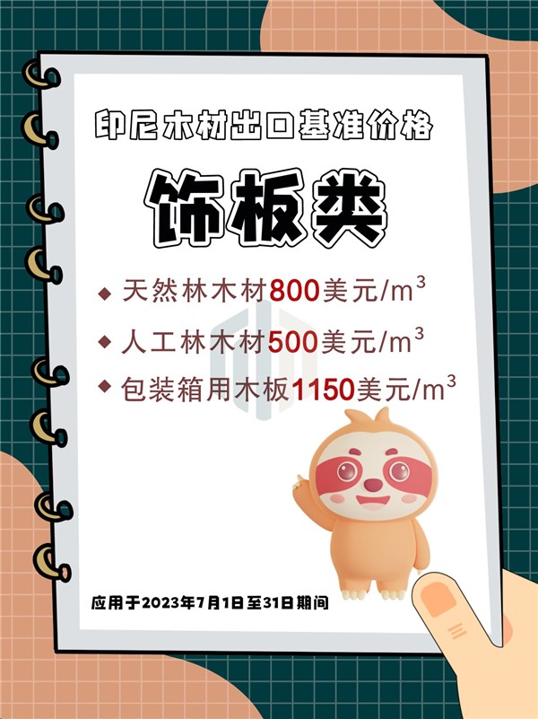 印尼贸易部的官方声明于2023年7月6日发布,公布了2023年7月1日至7月31日期间有效的木材出口基准价格(HPE)的确定结果。其中表示:“2023年七月HPE木材产品发生了一些变化。”