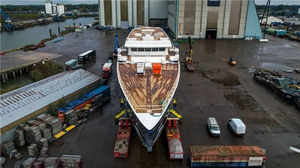 正在建造的超级游艇的视图。(图片来源:Guy Fleury)