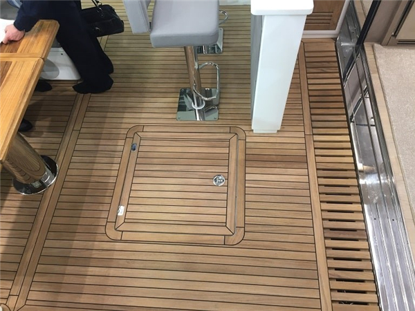 超级游艇船头使用的柚木视图。(图片来源:Guy Fleury))