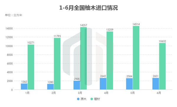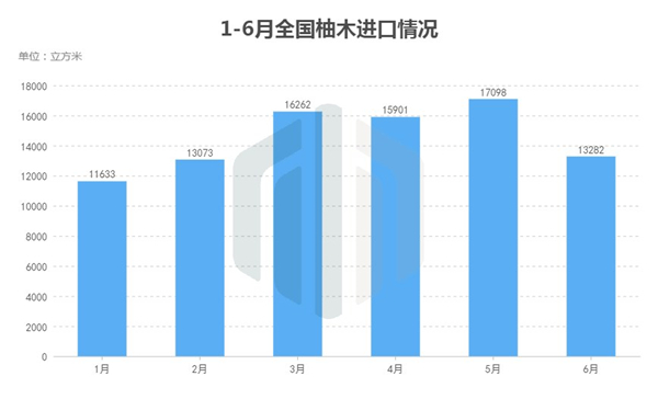 根据海关总署统计数据,今年上半年,全国进口的柚木同比增长192.6%至8.73万立方米;进口总值达4亿8143万元,同比增长262.5%。