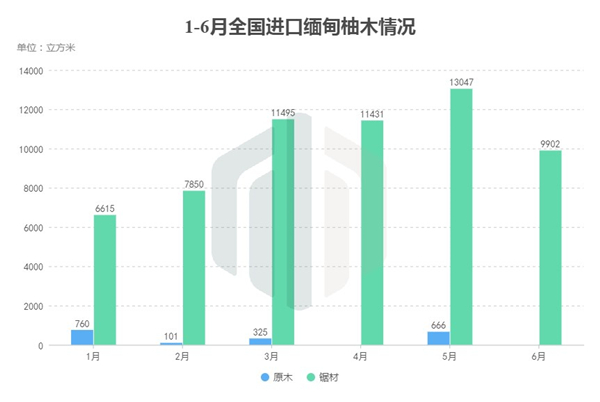 总体上看,上半年全国的柚木进口数量激增,主要是柚木锯材数量剧增,并且是来自缅甸的柚木锯材进口增加。