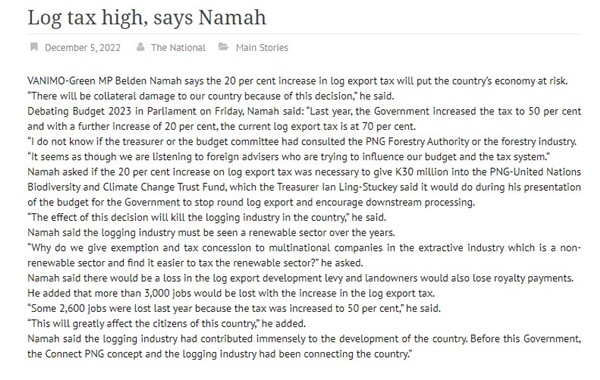 尽管巴新政府近几年关于提高关税的决定,都遭到森林工业协会反对,但总理詹姆斯·马拉佩仍坚持为了在2025年之前停止所有原木出口而出此策。