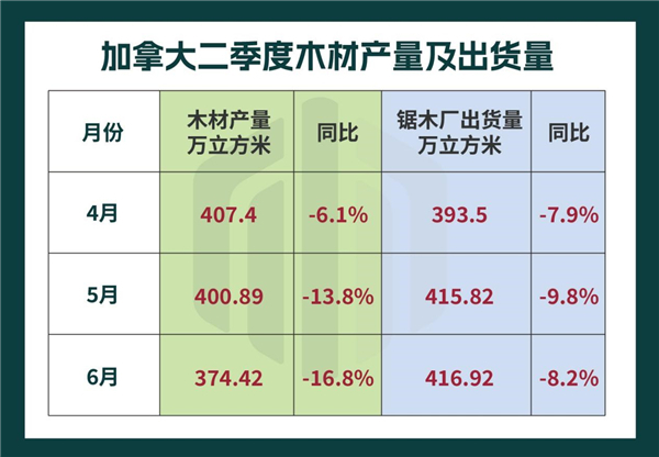 根据近期数据来看,加拿大木材产量和出货量并不止在6月份出现下降。而是在整个二季度保持持续下降趋势。