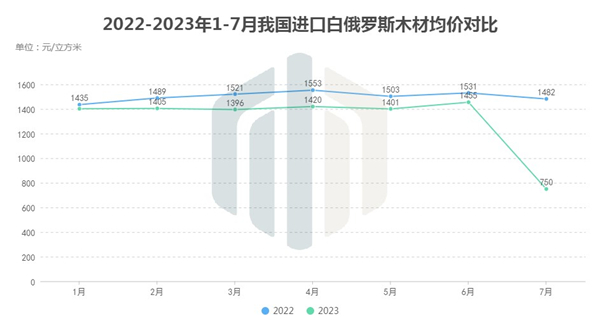 从均价上看,7月的到港白俄罗斯材价格下降明显。6月还在维持着1455元/立方米的上半年最高水平,到了7月立刻跌至750元/立方,成为今年截至目前的月均价格最低月份。