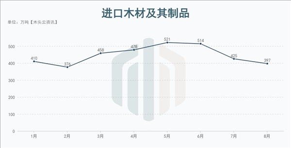 小懒整理海关数据显示,8月木材及其制品进口呈现全年最大降幅:-19.5%。进口量回落至397万吨,进口额下降24.4%至82.3亿元。