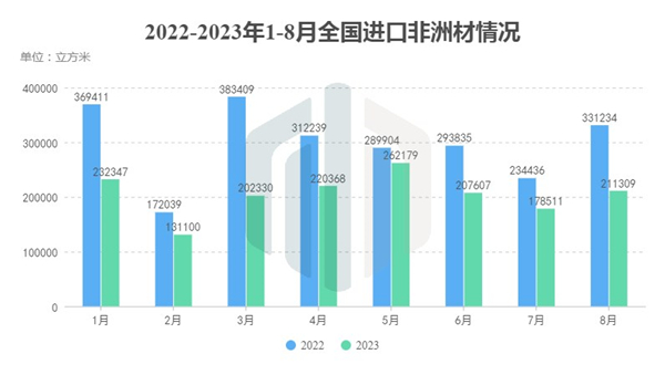 根据我国海关数据,今年1-8月,非洲出口至我国的木材总量达238万立方米,同比下降31%;进口总值达39亿元人民币,同比下降38.53%。