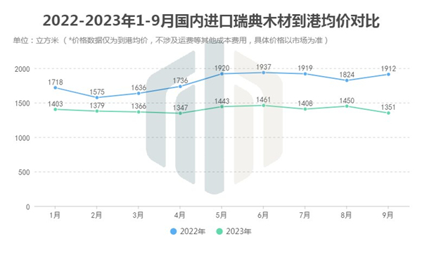 从均价上看,与去年同期波动较大的情况不同,今年前9个月进口的瑞典木材价格基本保持稳定,且整体低于去年水平。而在市场需求未能显现明显增长的情况下,预计全年进口的瑞典木材价格将维持偏低水平。