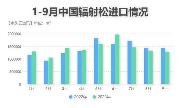 据中国海关总署的统计数据显示:今年9月,中国共进口了128.5万m³的辐射松,来自新西兰的辐射松原木比例依然占多数,共计125.1万m³;辐射松锯材分别来自新西兰、澳大利亚、智利和巴西,共计有3.3万m³,环比下降了30%。