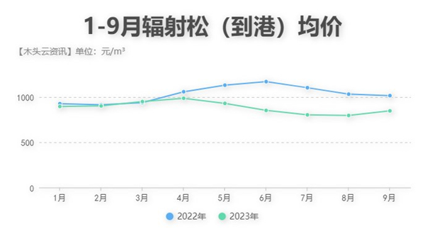 从今年前三个季度的新西兰辐射松进口情况来看,从下半年开始,中国对辐射松的进口量就在不断减少,目前基本保持在130万m³/月的水平;从价格上看,在经历了连续四个月的到港价格下调后,出口至中国的辐射松到港价终于在9月有所上涨。