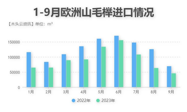 从材种来看,出口中国的欧洲山毛榉和欧洲橡木变动明显。据统计数据显示,从第三季度开始,中国市场进口的欧洲山毛榉数量就在不断减少,直至9月已经创下了今年以来山毛榉最低的进口记录。目前国内山毛榉库存充足,预计在第四季度,市场上欧洲山毛榉的进口数量和价格不会发生太大变动。