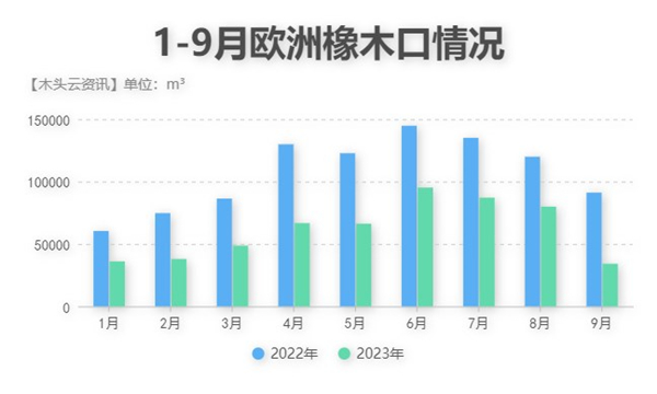 今年9月,出口中国的欧洲橡木环比下降57%,仅有3.4万m³,同样创下了今年以来中国对欧洲橡木的最低进口记录,虽然截至9月,其到港均价仍基本稳定3150元/m³左右,但据木材商反映,近期北美橡木的供应紧张,不少橡木采购商开始寻求货源,接下来国内市场上的欧洲橡木或许会迎来需求增加和价格上涨。