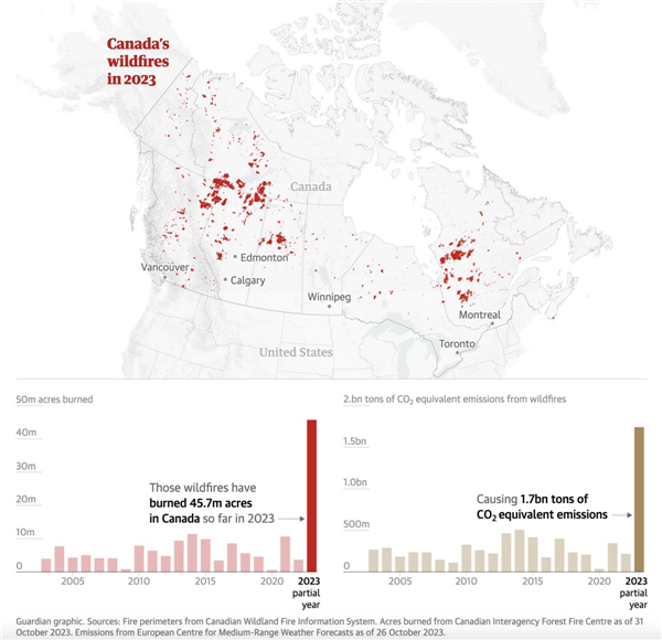 据了解,加拿大拥有世界上10%的森林,但其中三分之一的土地在过去40年中被烧毁。在今年的野火中,北方森林中占主导地位的冷杉和云杉是否会像以前一样恢复,还是一个未知数。虽然现如今步入11月,加拿大野火也开始减缓,但留下的不止是烧焦的北部森林、刺鼻的烟雾、还有对世界各地的气候产生负面影响。