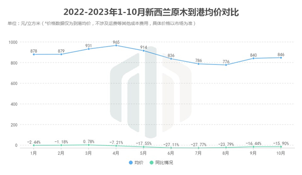 然而,从到港均价来看,今年以来出口到我国的新西兰原木价格持续下跌,仅3月份有着0.78%的同比上涨幅度。从环比来看,9月的进口价格较8月有所上涨。